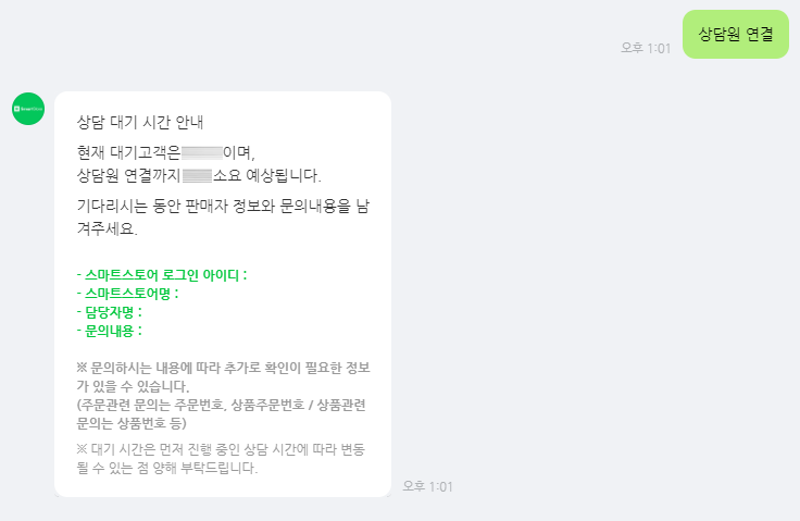 우선, 네이버 판매자센터 톡톡으로 들어가서 상담원 연결을 해주시면 됩니다.