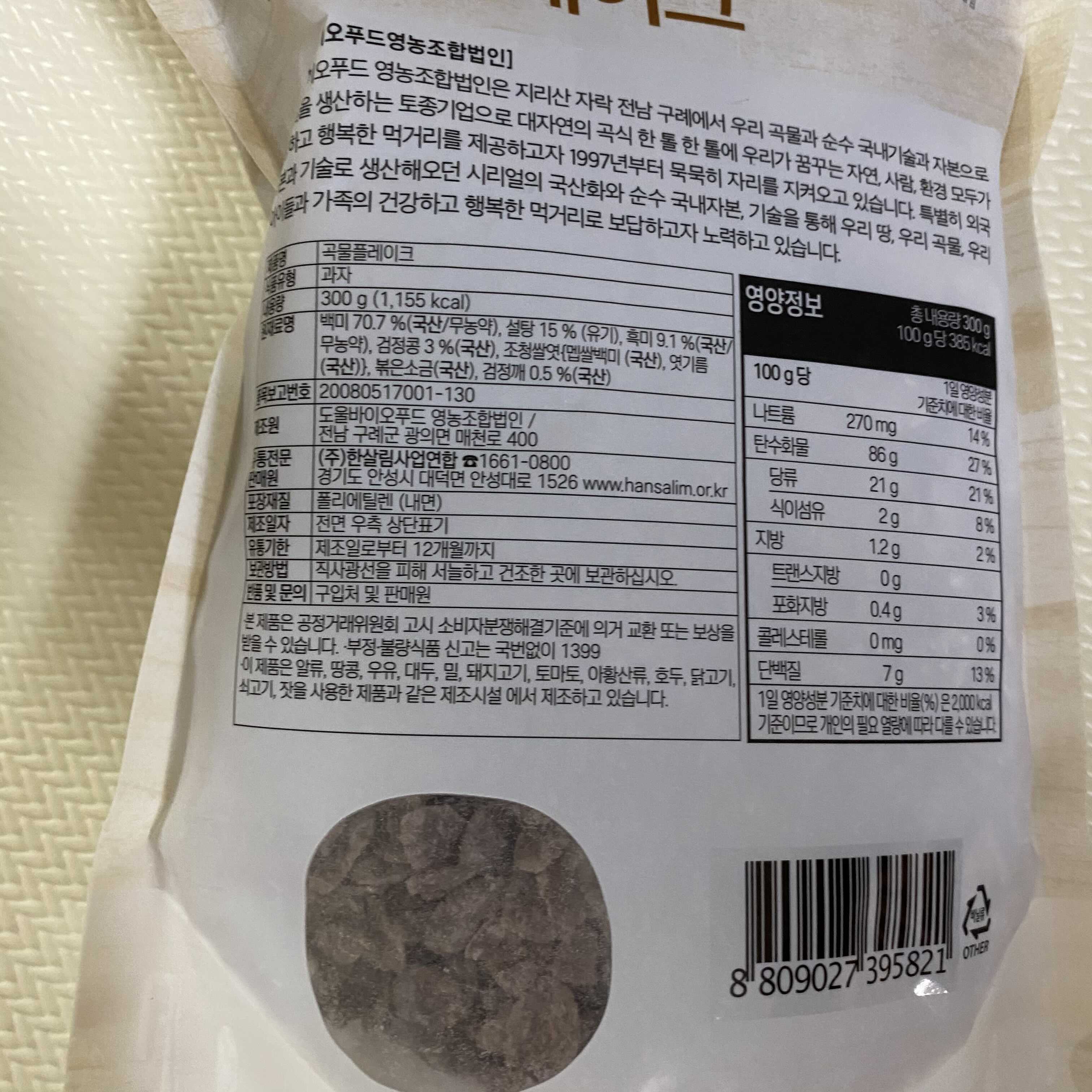 한살림 곡물 플레이크 (도올바이오푸드)