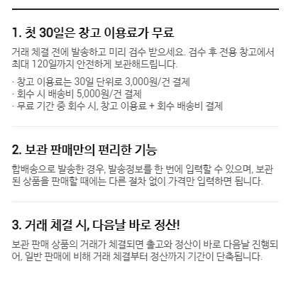 검수를 먼저 진행하여 창고에 보관한 다음 판매를 할 수 있는 서비스입니다.