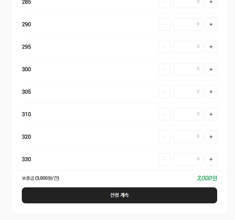 사이즈를 선택하면 보증금 3,000원을 결제하게 됩니다.