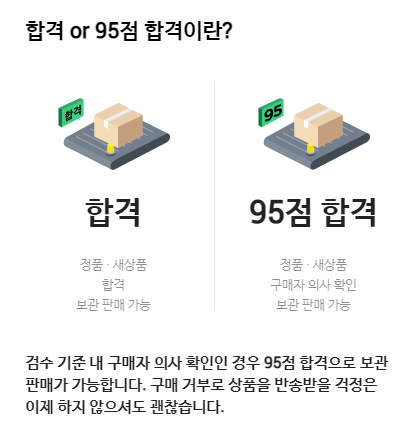 95점 합격은 정품으로 검수를 하였지만, 약간의 불량이 있는 경우