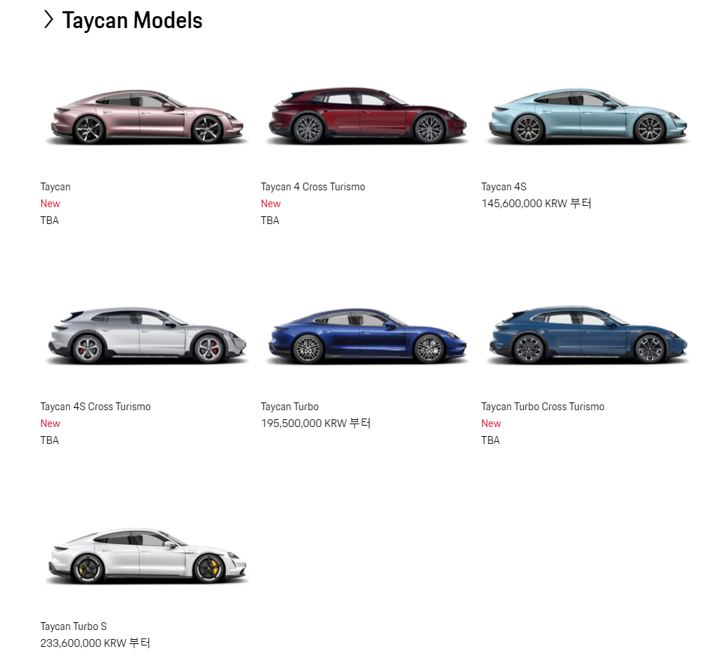 타이칸의 모델이 생각보다 많네요,