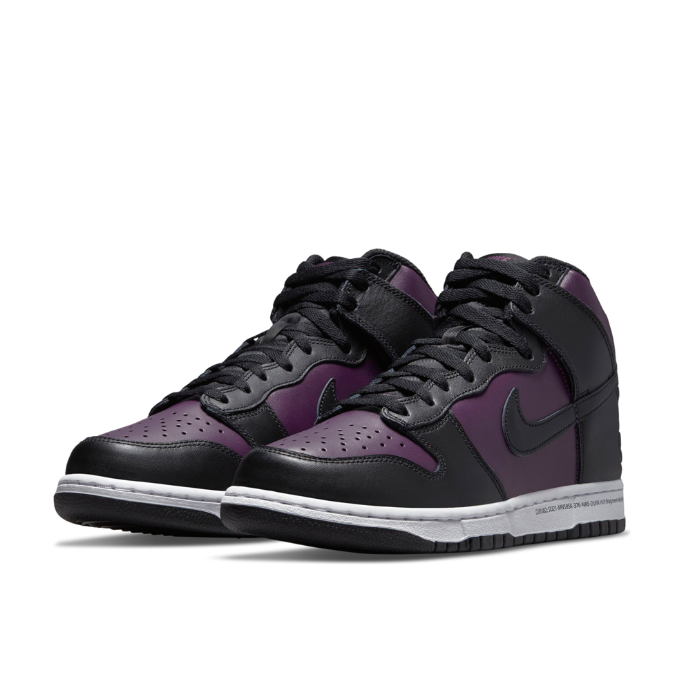 웍스아웃에서 나이키와 프라그먼트의 콜라보 모델 덩크 하이 블랙 / 와인 컬러 라플이 진행 중입니다.